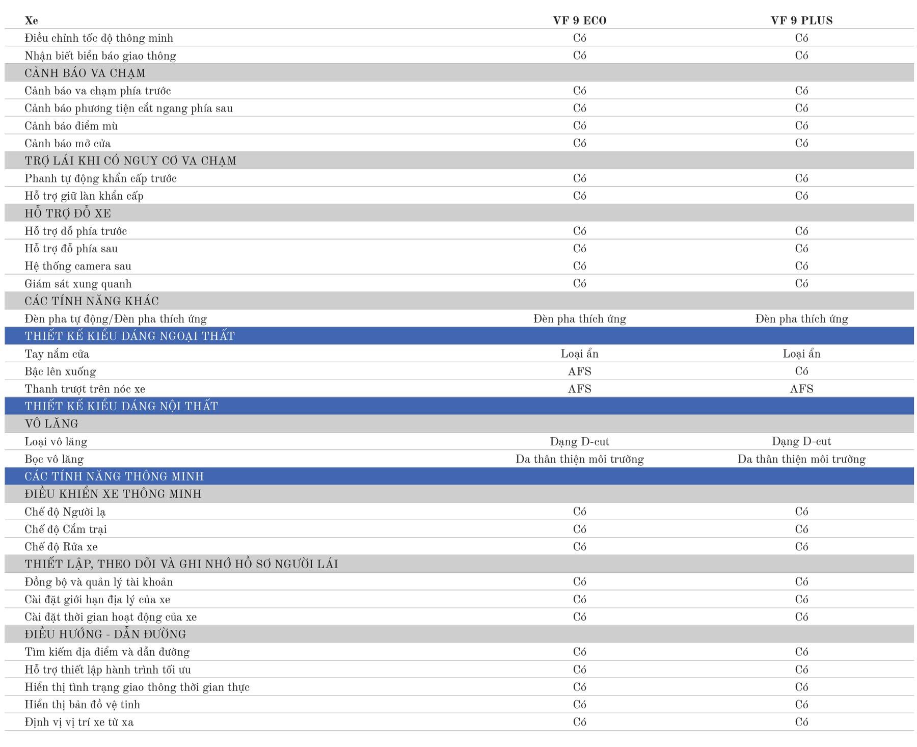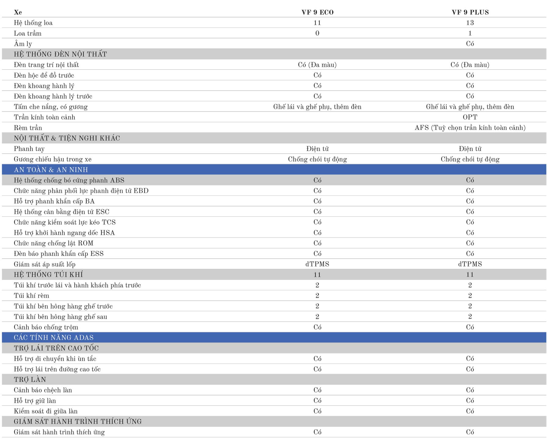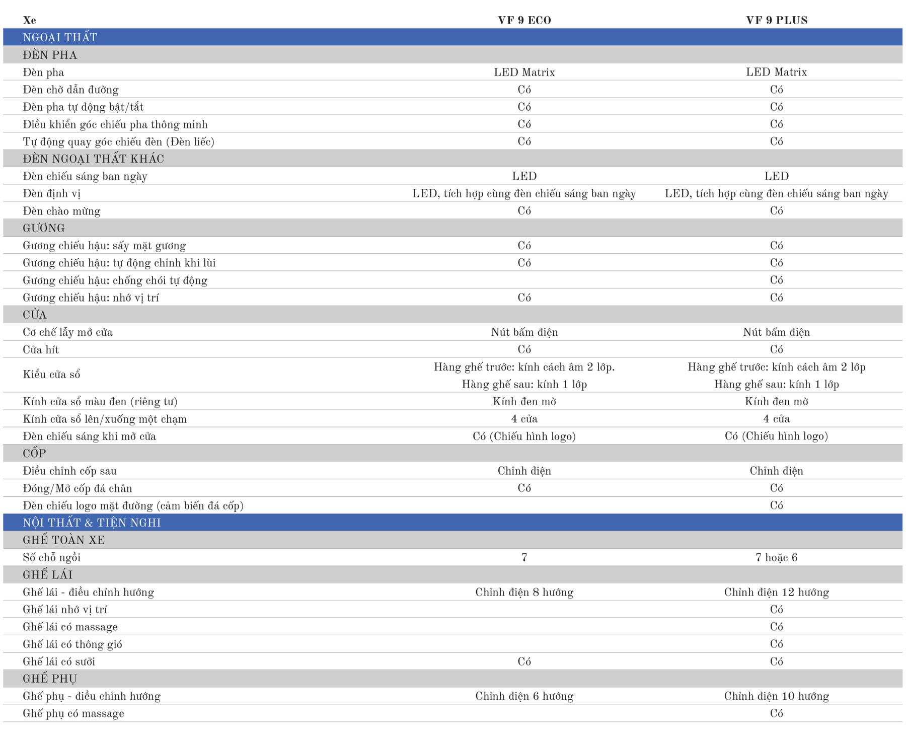 | BẢNG GIÁ XE VF 9 BAO GỒM PIN ( CATL) | |