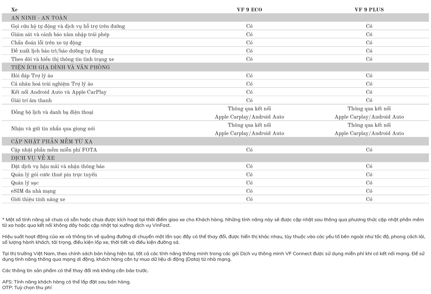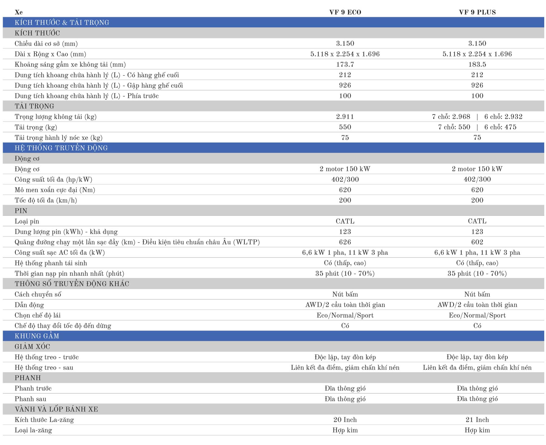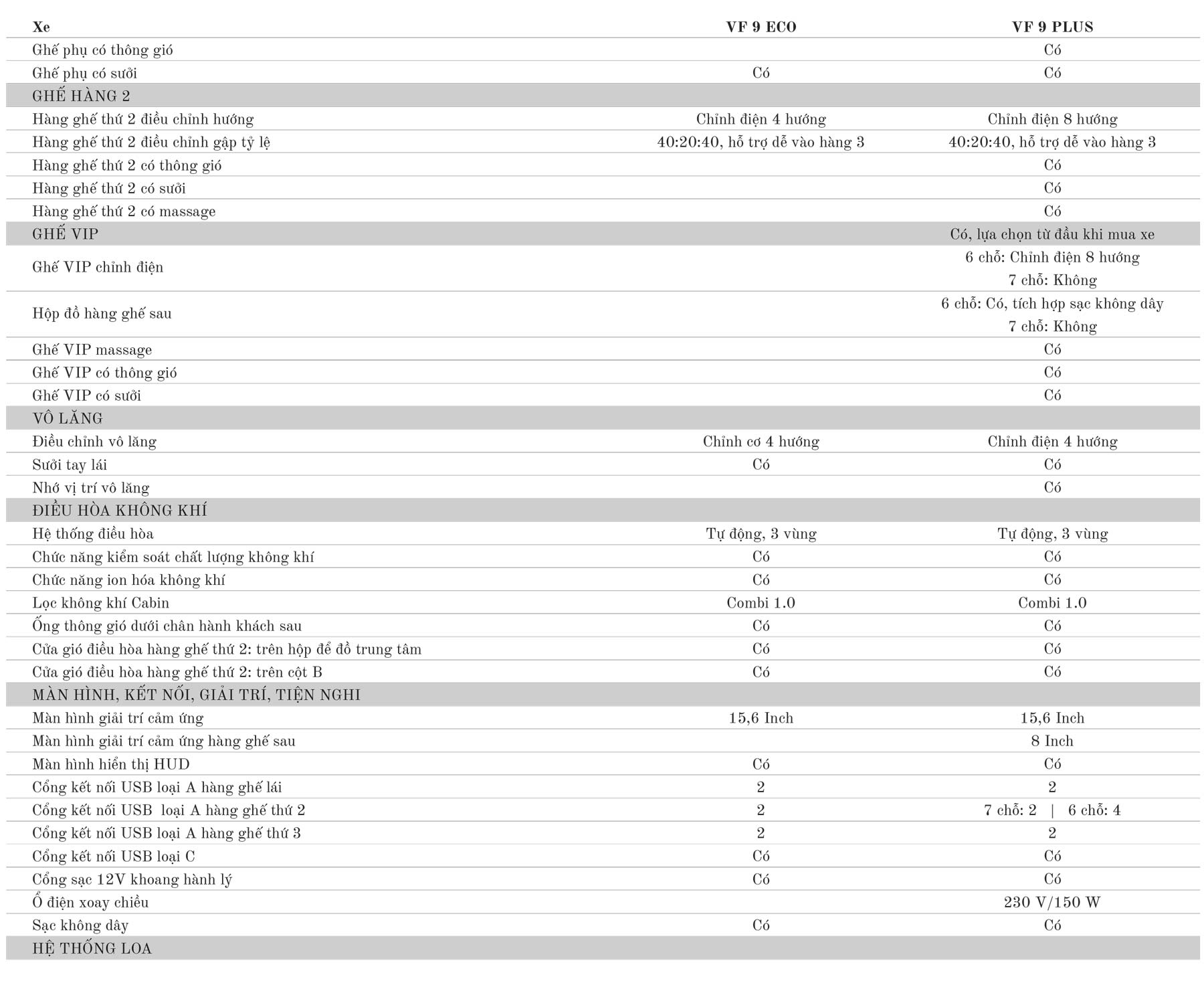 | BẢNG GIÁ XE VF 9 BAO GỒM PIN ( CATL) | |
