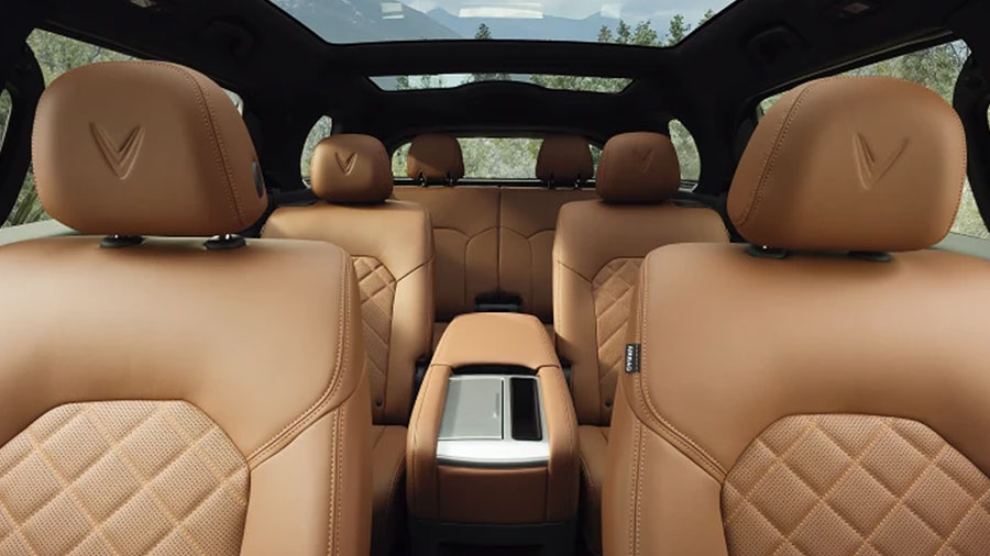 Ngôn ngữ thiết kế tối giản mang hơi hướng tương lai phối hợp cùng loạt vật liệu cao cấp, thân thiện với môi trường, VF 9 đem lại trải nghiệm nội thất khoáng đạt, thư thái trên mọi hành trình.